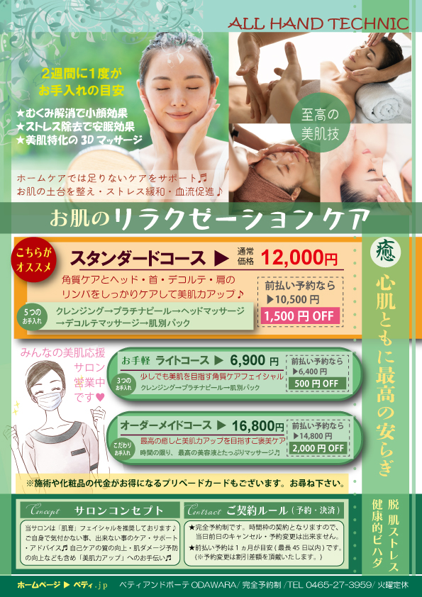 お肌のリラクゼーション・ケア♬